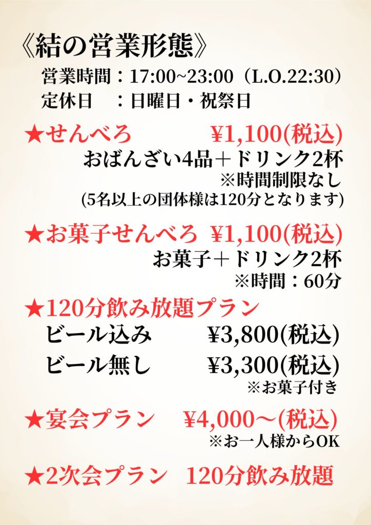 17時より営業する『帯広せんべろの店 結』